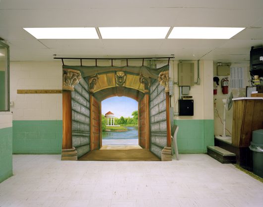Prison Landscapes is a collection of over 150 photographs of prison inmates representing themselves in front of visiting room backdrops.