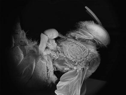 Her work is dedicated to ecological engagement and she has made various series centred on honeybees. Life and death coincide in photograms, which she creates by exposing the wings of dead bees on a roll of film she holds in her hand. In a ‘portrait series’ she uses an electron microscope to sense the delicate surfaces of the tiny animals, like a museological recollection of a lost species. And in a video, they float endlessly through the image, an effect that is reinforced by merging the sound of buzzing with Georgian song.