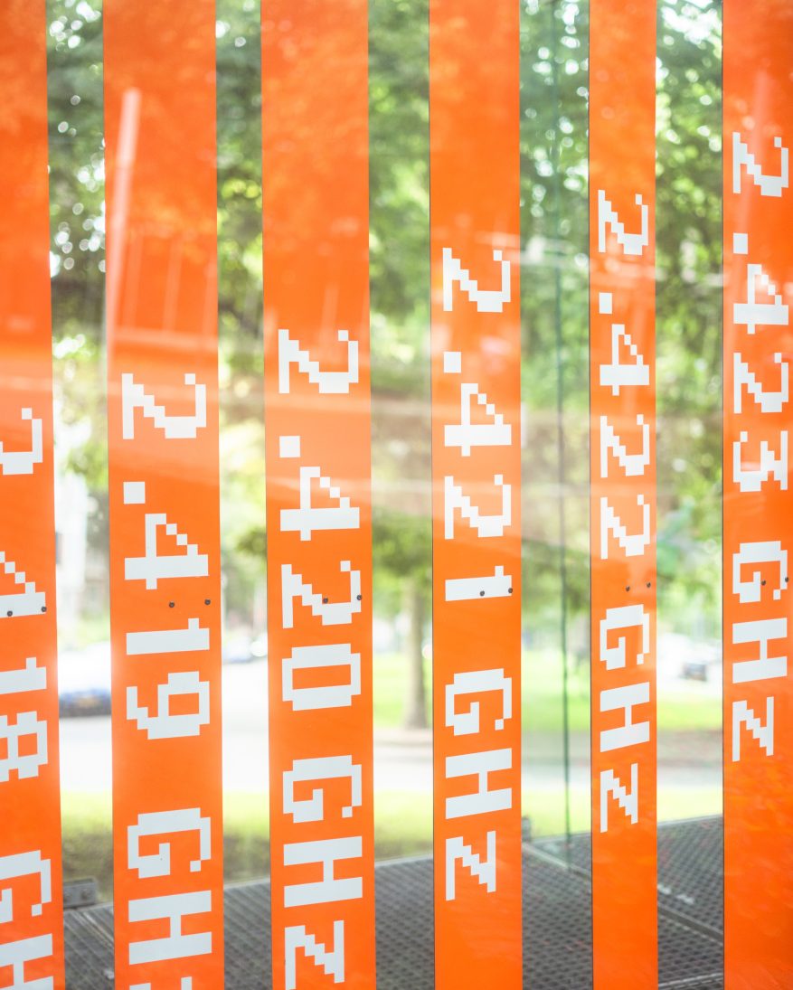 Each panel within this installation represents a specific channel in the Bluetooth spectrum through which these devices exchange data. Every time information is received, the corresponding panel is triggered. Not just by your smartphone, but also by your earbuds, smartwatch, or electric bike. The busier it gets, the more panels start to spin. Suddenly, the vast amount of invisible information surrounding you becomes visible. You can’t help but ask yourself: What information am I sharing here, and with whom?
