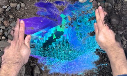 In a series of brief scenes, Silva’s hands push aside surfaces like moss, sand, and ice, revealing vibrant, synthetic video patterns underneath. These visuals allude to liquid crystal displays (LCDs), themselves reliant on natural materials to manipulate light. Silva’s physical gestures evoke the act of digging—both literally and metaphorically—linking the ancient practice of mining to today’s extraction of natural resources for technological production. His work reveals how the aesthetics of technology are deeply rooted in tangible, often exploited, landscapes.