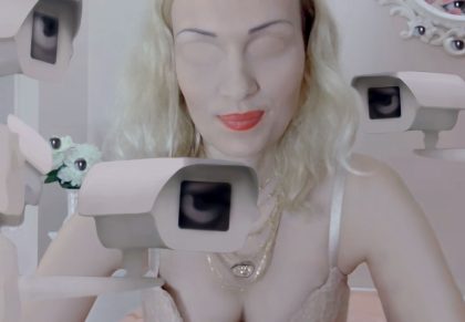 Hannes Hepp’s photomontages portray the invisible, global, digital espionage activities of the NSA and other security forces, but also the continuous alienation and isolation of ordinary citizens in the virtual world. The portraits in the series come from public chat rooms, where the persons depicted tempt visitors with the prospect of more explicit sexual images so as to entice them to pay for ‘private time’. The viewer is therefore simultaneously a voyeur and an object of voyeurism. Just as the photographer may have been spied on by security forces whilst making the photomontages in his studio.