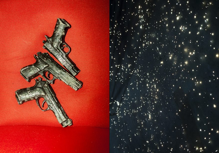 Since the unrest in Bangladesh in 2013, political murders and disappearances have been the order of the day. This situation led Sarker Protick to create images of violence. He visited film sets at the BFDC (Bangladesh Film Development Corporation) and took images of notorious crime bosses and prisoners. The series ‘Love Kill’ is inspired by the Dhallywood film ‘Love Me or Kill Me’, with warm colours illustrating the extreme sentiments that can be evoked through image saturation. The images are straightforward and flamboyant, aggressive and charming, oscillating between the real and the imaginary. The series closely matches the contrasts of the Bengali films Protick grew up with; the loving and killing, visual violence combined with comic sound effects.