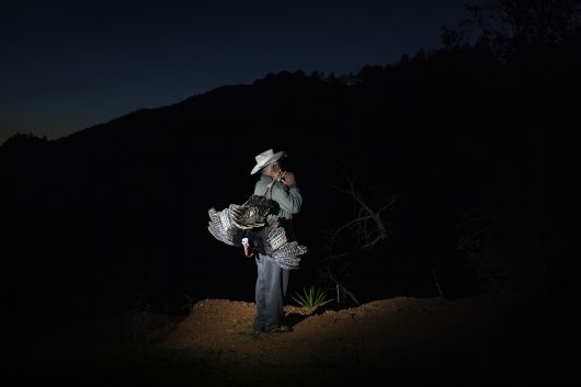 Mara Sánchez-Renero poetically photographed the nature and people of the Zongolica mountain range in Veracruz. The original inhabitants are the Nahuas. This indigenous group of agricultural labourers is increasingly becoming a migrant community due to the precarious economic situation in Mexico. Through her images, we witness the dissolution of their existing identity by isolating the men and women from their daily context. Instead, these people are depicted within the space of their own imagination, the space of their mythical existence, whereby she confronts the uncertainties of human nature. ‘Iluikak’, which means ‘close to heaven’ in Nahuatl, is at once a description and a metaphor, encompassing the lives of the people of the mountain.