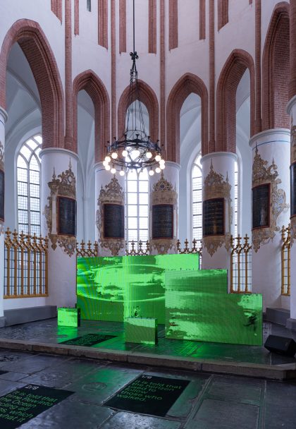 500 hours of videos are uploaded to YouTube every minute. Two billion active users watch more than a billion hours of videos every day: we have arrived in an information age where the amount of data on the internet is beyond our grasp. ‘LAWKI–NOW’ turns the church into an audio-visual and interactive tool, wondering how a computer could help us understand this kind of huge amount of data by turning it into a new story for us.