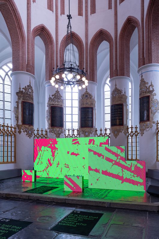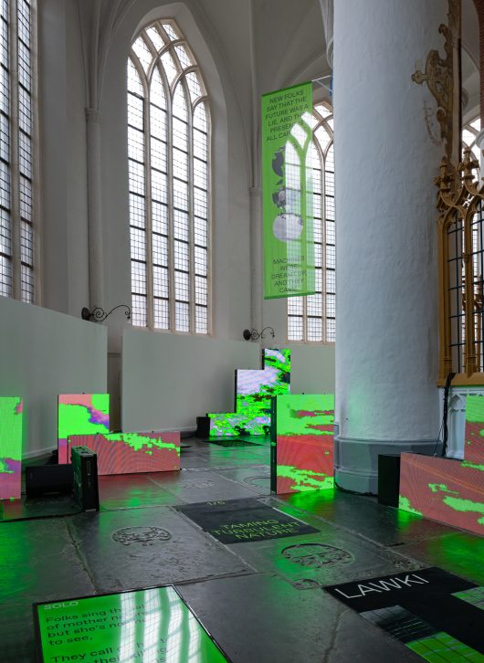 In this spatial installation by ARK, a network of unsupervised algorithms curate countless online videos into new narratives. Through this compositional gesture, today’s story is broadcast in sound and vision, in which reality merges with the techno-imaginative. ‘LAWKI–NOW’ in the Achurch in Groningen is a life-size installation in five parts in which the visitor can wander. The work raises questions: Does artificial intelligence work for or against us? Is the truth of the internet taking over our reality? Are we still in control of our imagination?