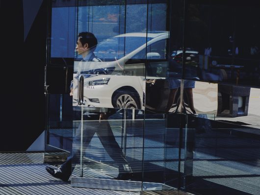 Marvin Leuvrey’s series shows visually oversaturated surroundings, with a continuous flow of people, media devices, LED screens, industrial and computing technology and the artificial, man-made nature. The images are a mapping of the acceleration of our society, caused by permanent technological progress. Overflow is a metaphor for the ubiquity of media devices for the virtualization of reality, which increasingly approximates a simulation in which the boundaries between the real and the virtual start to dissolve.