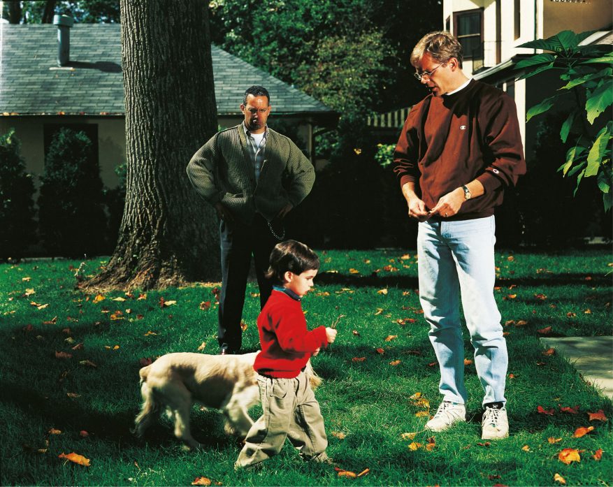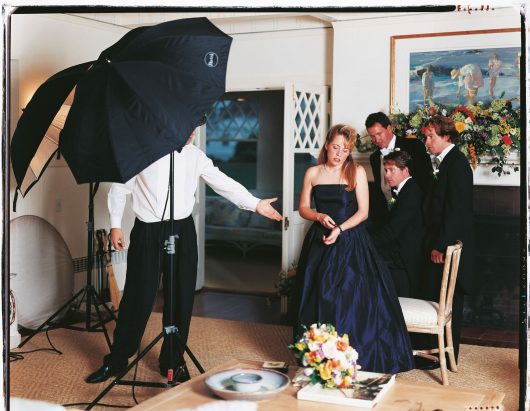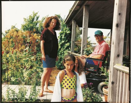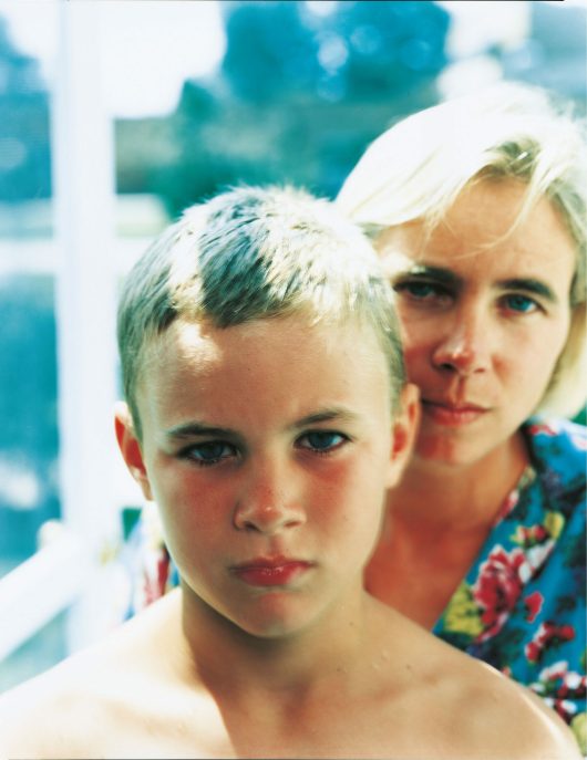 Tina Barney (1945) was born to a wealthy American upper-class family. Her personal family relations are recorded in large images. Thus we become spectators to the lives of Barney’s family and friends. However, colourful images transcend social issues as they contain a more psychological depth, an implicit story. “The insignificance of humanity and of life frightens me. And the sense of doubt, the question of the purpose of our existence, compels me to continuously seek the essence; the depth and value of life. I wish to know what other people feel, else life is too lonely.”Initially, the photgraphs seem to be snapshots, but in fact the situations are staged. Barney attaches great importance to time, consequently figure and place are remeniscent of nineteenth- century painting. However, some credit can be granted to coincidence in the images; at one point in time the action arose spontaneously. Furthermore, it seems as if some of the persons portrayed suddenly turn round or get up from their chair unexpectedly. Due to this coinciden-ce the images look more real, even as if they were moments in real life. The images portray relationships within a family, nevertheless, at the same time the theatrical roleplay causes them to have a tense aspect.