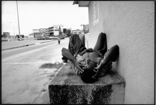 In Africa people often think that these people are possessed by a demon or a deity, and they are even driven out of some villages. They then travel to the city, where they are abandoned to their fate. Kasco photographed them in the gutter, sleeping on the street, screaming and walking around naked. Some knew that they were being photographed and screamed at the photographer, or looked absently into the camera. Others were lost in their own world and appear to be conscious of nothing. The photographs are confrontational; it is as if one has stepped into the world of these people. Kasco is interested in the solidarity found in everyday life in Africa, and simply asks if one can speak of such solidarity when there are people wandering the street who, in other parts of the world, would receive care.