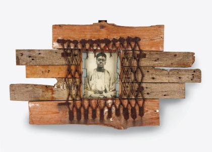 Sakho wants to reach back to the roots of African photography. He makes portrait photographs and uses found photographs from the 1920s and ’30s. Around them he creates collages with all kinds of found materials and objects, including wood, metal, food tins and beer cans. He seeks to unite photography, painting and sculpture with one another.