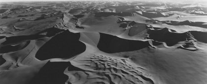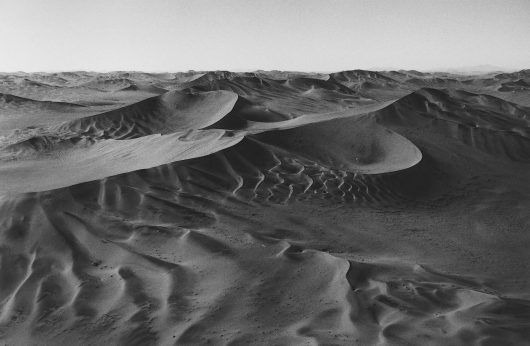 Since 1997 Balthasar Burkhard has been making aerial photographs. He photographs megacities such as Tokyo, Mexico City and Chicago – the proverbial “molochs” of modern civilisation. In addition he makes photographs of deserts: regions which, on the contrary, are not shaped by human activity. In this manner Burkhard sets cultural and natural structures over against each other, without seeking polarisation. Through their heavy, deep tones his photographs take on a comparable, massive stature. Yet in these almost sculptural bird’s-eye views, details continue to command attention, right to the horizon.