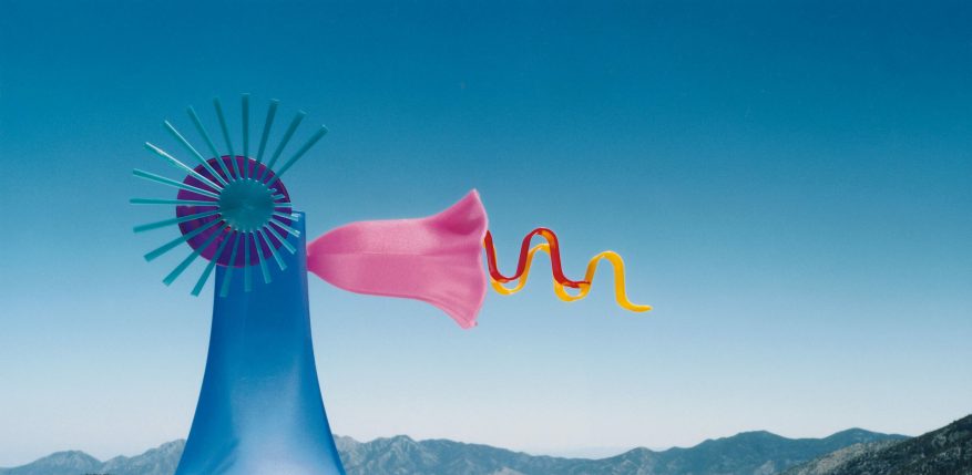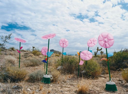 In the series NEW AMERICAN LANDSCAPES Ruiter photographs constructions he makes himself from plastic knickknacks bought in American $0.99 Shops, against the background of desert landscapes around Nevada. The effect is disconcerting: it is as if the vegetation in this spot, as colourful as it is monstrous, had grown there naturally. The plastic utensils, termed “archaeological finds of the future” by Ruiter, are mass-produced, examples of the unrestrained prosperity that makes living more comfortable and at the same time threatens life itself because of the environmental pollution that goes with it. The sharp contrast between these objects and the background in the photographs speaks of the conflict between culture and nature.