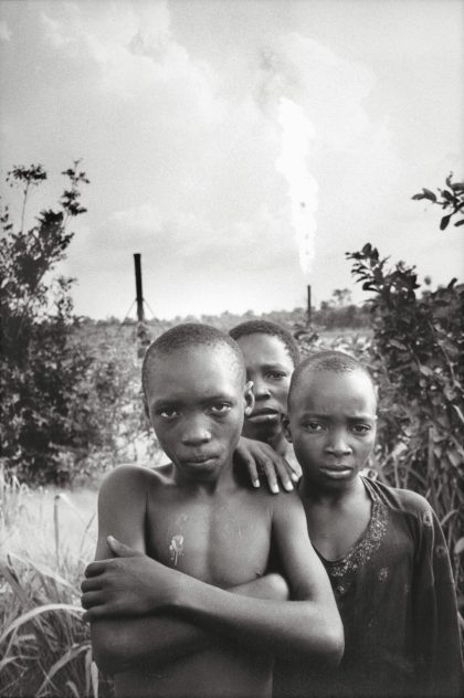 Since Royal Dutch Shell discovered oil in the Niger delta in 1958, Nigeria has developed into the sixth largest oil producer in the world. While the government was taking most of the profits, the local Ogoni people were confronted with the consequences: pollution of the environment and the disappearance of fish and wild animals. Under the leadership of the writer Ken Saro Wiwa, in the early 1990s the Ogoni demanded compensation. The campaign was hard-headedly suppressed by the government and the oil companies, and together with several co-workers Saro Wiwa was hung in 1995 after a dubious trial. In 2002 the Malawi-born Evans (b. 1968) travelled to the region for the first phase of a long-term project in which she will be following the social, political, economic and cultural developments in Nigeria.