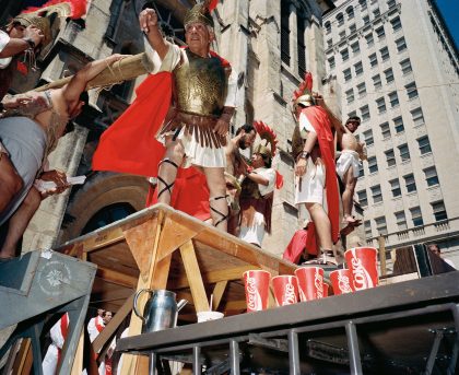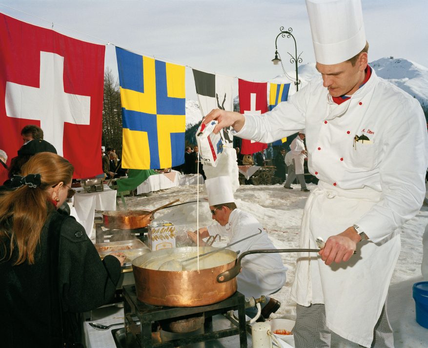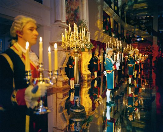Tableaux d’Histoire is a project that has already run for some years, in which the frequently honoured Magnum photographer De Keyzer (b. 1958) comments on the concept of ‘news’ in an unorthodox and ironic manner. During stereotypical ‘press events’ such as an international summit in Davos or a debutante ball in Paris, he records not what happens in front of the footlights, but the spectacle that takes place on the sidelines, or behind the scenes. The composition, lighting and large format of the photographs refers explicitly to 19th century history painting. Obviously, he only shows or publishes the results much later, when the event itself has long ceased to have any news value.