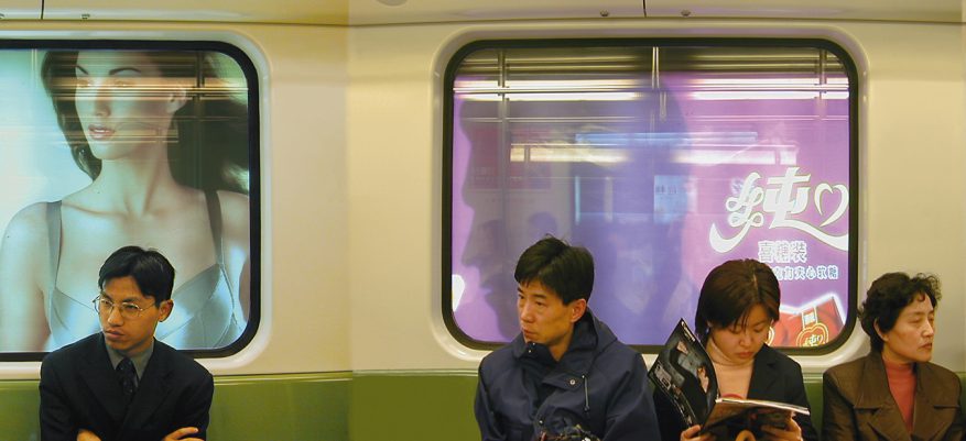Asia has also entered the era of extravagant consumption. There too shopping has become an important leisure time activity. Developments in the Chinese metropolis of Shanghai are a symbol of this process. Roux (b. 1961) photographed in the city’s subway, which increasingly has been taken over by advertising, billboards and other expressions of the advancing cult of consumption. Her photographs give an impression of this invasion of public space and the human spirit. Underscapes is presented in the form of an interactive installation that enables the viewer to travel along with the subway passengers.