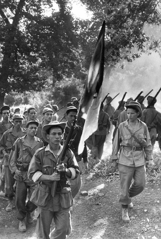 Kryn Taconis (b. Rotterdam, 1918) was the only Dutchman who has ever been a member of the legendary Magnum photo agency. He made his first photographs during the Second World War, in the course of producing false documents for the resistance. He also worked for the Underground Camera, a group of Dutch photographers who secretly recorded the German occupation. After joining Magnum in 1950, he want to Algeria in 1957 to photograph the activities of the FLN (Front de Liberation National) there. For two weeks the recorded the guerrilla war that the Algerian resistance movement conducted from the woods against the French colonialists.The FLN fought with weapons captured from the French. Good contacts in the countryside provided for sufficient food and clothing. During the time he was with them, the resistance group attacked a French convoy. According to the French radio eight guerrillas were killed in the action, while in reality no one was even wounded.