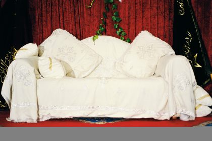 Ymane Fakhir photographed a wedding in the land of her birth, Morocco. She sees it as a colourful spectacle, filled purely with actors: everything is made up, seduction and theatre. A Moroccan wedding is prepared down to the smallest details, with nothing left to chance. The bridal pair are placed on a couch on a platform, so that all the guests can clearly see them. Fakhir sees this as the antithesis of the ordinary life of the Moroccan woman. Normally she is stimulated to be as good as unconscious of her body and presence. During the wedding she is suddenly the centre of attention and is exhibited like an object, clothed according to the dictates of fashion and religion.