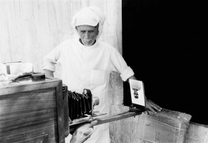 In the mid-1990s artist Thomas Kneubühler spent two weeks in Baghdad. It struck him that his own experiences did not square with the image that he had been presented with by Western media. Rather than doing a photo report himself, he decided to investigate how the Iraqis present themselves in the media. Kneubühler visited Iraqi cinemas, photo shops and museums, and studied programmes on Iraqi television. He collected images, made photographs of them himself, and had his own portrait done by an Iraqi street photographer. The result is the installation BAGHDAD (MEDIATED), constructed of photographs and a presentation on video.