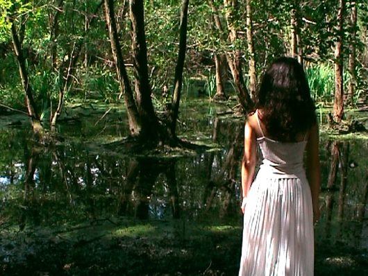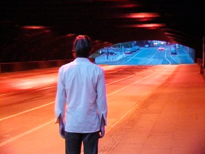 The installation CHRONOTOPE (2003) is a modern interpretation of the work of Caspar David Friedrich (1774-1840), a prominent landscape painter in German Romanticism. He often painted figures standing with their back to the viewer, engrossed in the vast landscape which lies before both. Dominique Steiner placed a number of people in a similar position and had them stare at a series of contemporary landscapes. That invites the spectator to engage in the same reflection as on seeing a Friedrich painting: what are these persons thinking? What are they looking at? What would their face tell? This brings us into the same position as the persons we are looking at, and we become one with their meditation. We become engrossed in the installation, thereby stepping into another time and place.