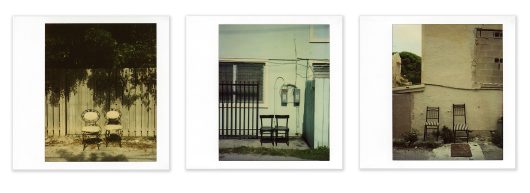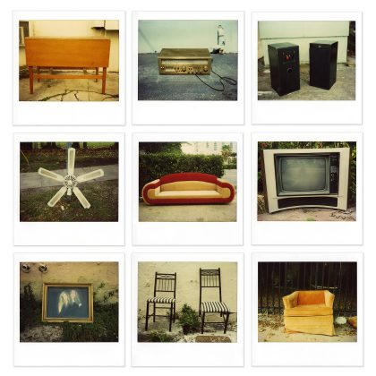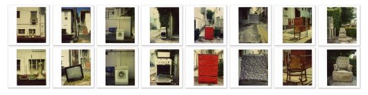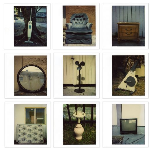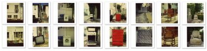 Displacement (2004) shows ordinary household effects that have been thrown out on the streets of South Beach, a coastal community in the American state of Florida. Generally they are objects that no one notices, but now that they are outside their normal context they take on a new, surrealistic dimension. Homeless, having lost their original function in the living room or bathroom, they await a new use. Possibly they will be picked up by the garbage truck, or perhaps, because of their relatively good condition, they will be used again in another context. Even as we know nothing of their background, we can only guess at their future, which perhaps includes a whole new lifecycle.