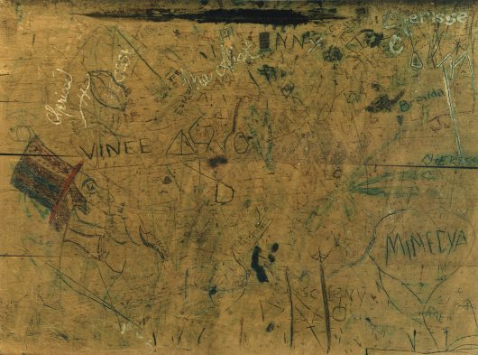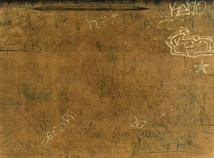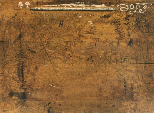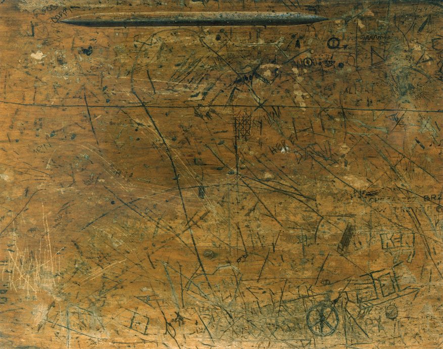 The installation INSIDE DRAWING (1997-2004) contains photographs that Orit Raff took at schools in New York. According to Raff the school years play a crucial role in forming our memory: for the first time the familiar atmosphere at home is exchanged for a social environment. She photographed apparently trivial things, such as carvings on desks and the marks left after erasing chalkboards. Over the years these increasingly numerous vestiges grew into small histories, which form palpable memories of the school years that are so important for human development. By photographing the scruffy spots in isolation, Raff gives them an unexpected beauty.
