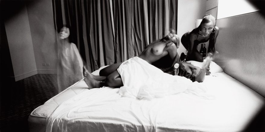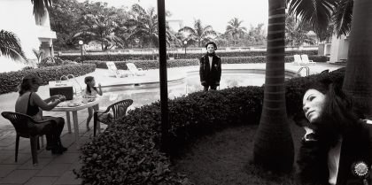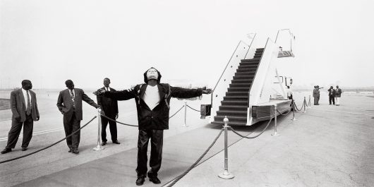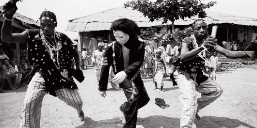 In his satiric photo essay MASQUERADE: NIGERIA HITS MICHAEL JACKSON (2000-2004), Owen Logan had a performer impersonating Michael Jackson travel through Nigeria. Logan conceived the series after he had seen a Michael Jackson imitator perform in a Nigerian club. The audience, consisting of white expatriates, responded as if nothing had changed in the post-colonial era. It seemed as if Nigeria was still a black country made for whites. Westerners see the black population primarily as cheap labor, a role which the Nigerians accept. Logan sees Michael Jackson as a striking symbol for this. Jackson has also repudiated his roots in the pursuit of a wider white audience. Moreover, his deep connections with the record industry show strong similarities with the warmth that the Nigerian political elite entertain for the white exploiters of their nation’s oil reserves.