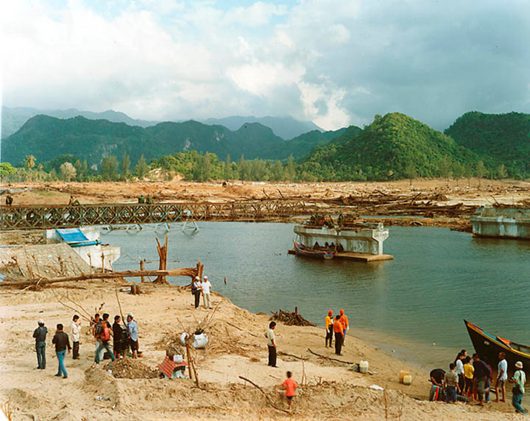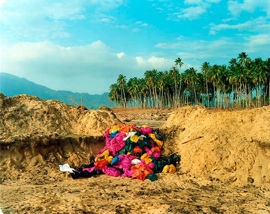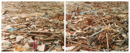 Sasha Bezzubov has photographed the scenes of natural disasters all over the world. He visited Indonesia and Thailand soon after the tsunami. What he encountered there corresponded with his previous experiences: the immense forces of nature had changed the area into a surrealistic, apocalyptic landscape. Survivors wandered around vacantly, in search of their possessions. Bezzubov got the feeling that he had landed in a futuristic doom scenario. He imagined himself to be one of the last witnesses to the end of the world. He made Things Fall Apart (2004) in the style of traditional landscape photography, a picture of a future in which nature takes revenge for everything that mankind has done to it.