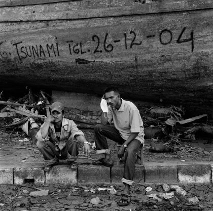 In January, 2005, two weeks after the sea-floor quake and the resulting tsunami, Stephen Dupont traveled to Banda Aceh in Indonesia, the city that lay closest to the epicenter of the event. There he was a witness to the destructive force that nature can exert on man. The flood wave, which claimed hundreds of thousands of lives throughout Southeast Asia and left millions of people homeless, had as good as erased Banda Aceh from the earth. There remained only chaos and misery. Even the survivors who sought the remains of their homes looked like zombies, says Dupont. ‘There was no more emotion in that place. Everything was dead or lost.