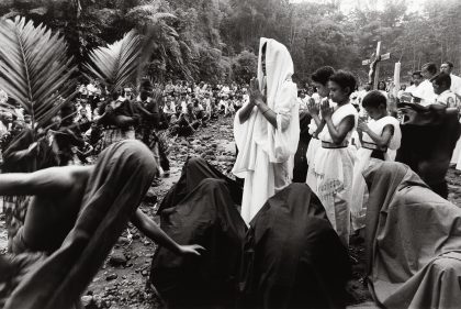 Although from a Confucian family, as a child Swan Ti Ng ended up in a Catholic school, after which baptism followed. Once an adult, Swan Ti Ng realized that her faith went no further than the obligatory church attendance. To investigate her religious identity, she decided to photograph CATHOLICISM IN INDONESIA (2000-2005). Officially the country recognizes five religions (Protestantism, Catholicism, Buddhism, Hinduism and Islam), and one’s affiliation is noted in one’s passport. But in practice, Swan It Ng discovered, the country exhibits a mishmash of traditions and beliefs. An adherent of one faith has no problem about using rituals from another.