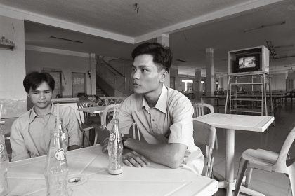 ‘I hope to earn more money if I graduate. Then I can help my family escape poverty.’ These words, from the Vietnamese student Toan, are the basis for DEPARTURE (2005). According to Phuoc Bui Huu, they characterize the situation in the Vietnamese countryside, where one of the children in a family studying is the only chance for a better life. Toan, 22 years old, is in his second year at the academy for economics in Ho Chi Minh City. He spends most of his free time in front of the television in his room. He has no money to go out for entertainment. Phuoc Bui Huu photographed Toan on the campus and with his family in the countryside. In his way he wants to let us see that Toan, like so many Vietnamese students, ‘is on his way to an uncertain future, with almost empty hands’.