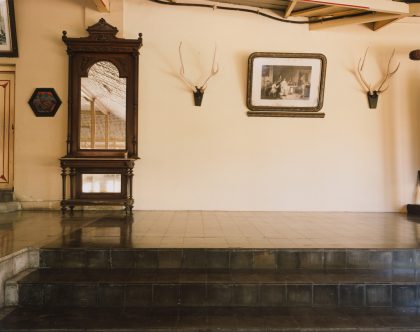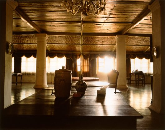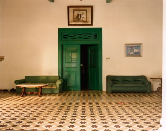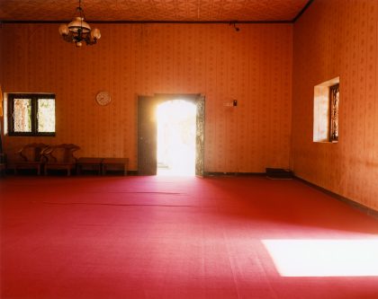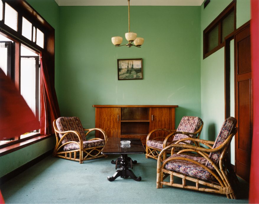 Wijnanda Deroo usually photographs interiors. She finds them everywhere: in hotels, mobile homes, synagogues and cafes. She records these places in a specific manner: intelligibly and in detail, but without people. Yet the images provide lots of information about the users. The design, colors and wear suggest a function, age and history. Because of the absence of people, these traces of life provoke an air of mystery, sometimes even menace. This comes through all the more clearly in the interiors that Deroo photographed on Sumatra, Java and Bali, places that have been associated with mystical forces for ages. The architecture in INDONESIA (2005) shows traces of Dutch colonialism, but likewise is redolent of Indonesian culture.
