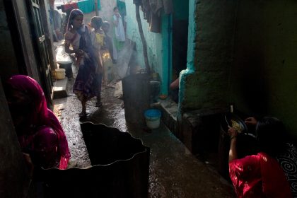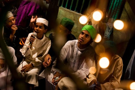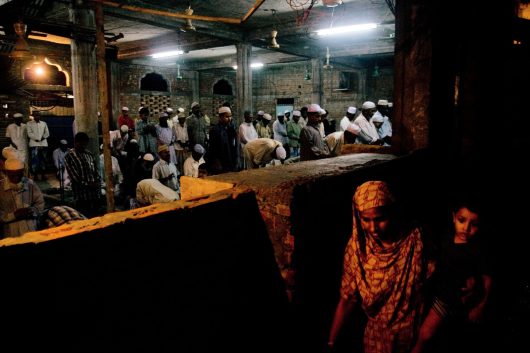 Those who are considered refugees in Bangladesh are obliged to live in government-run camps. The largest group in these camps are the Islamic Biharis. They have been in this region for sixty years now, but still have no official status. The Biharis came from East Pakistan, but at the outbreak of the civil war in Pakistan in 1971 sided with Islamic West Pakistan. After the war East Pakistan became Bangladesh. It regards the Biharis as traitors, while Pakistan refuses to take them in for fear of being overwhelmed with refugees. Since then the Biharis have been stateless, and live under miserable conditions in Bangladesh. – A fire-juggler at the camp prepares for the big event of the tenth of Muharram, the following day. Many such displays will be seen the next day during the Muharram procession, an important event among Shi’ite Muslims worldwide, and one of the most important religious events among the camp-dwellers.