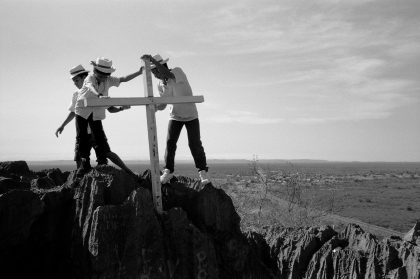 Sertão is a tinder-dry, blisteringly hot region in the north-eastern hinterlands of Brazil. The inhabitants, the Sertanejos, regard the land as their church. Some even believe that Jesus is buried there. Originally the Sertanejos were religious dissidents who from the 17th to the early 20th century hid out in this remote corner of Brazil. Since that time they have undertaken pilgrimages through the inhospitable region to atone for their sins. Salvation is conceived primarily in the form of rain, which may not fall in the Sertão for three years on end. Thus religion and climate have become inseparably connected.