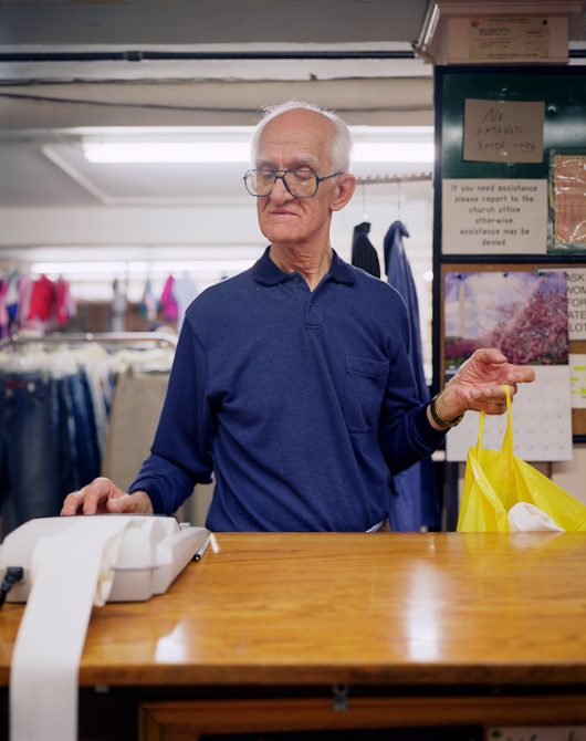 Thrift is the story of secondhand articles, a market into which social and religious organizations devotedly pour their efforts. As a rule the goods are processed by volunteers or by people who – often as part of their parole conditions – are working on a return to society. What goes through their hands is the tangible evidence of the whims of fashion in our time, tastes that rise and disappear with equal speed. Christian organizations give these things a second life, as an extra expression of their ideology.