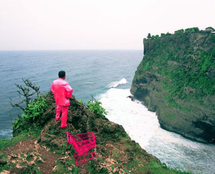 Around midnight on October 12, 2002, a bomb exploded in front of a nightclub in Bali. More than 200 people, primarily Australian tourists, lost their lives. It was the largest attack ever committed on the Indonesian island, in the blink of an eye turning it from a tropical paradise into a hell. At the same moment it became clear that no one, anywhere, was safe from Islamic terrorism. That realization is also found in Pink Man, introduced by Manit Sriwanichpoom in a previous series as a critical commentary on the replacement of traditional culture by commercial ideals. As the archetypical tourist with a compulsive need for excitement and relaxation, he wanders across Bali, in search of the lost paradise.