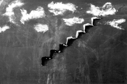 Along with Jano Pavlík Miro ávolík also belonged to the Slovakian New Wave. This group of young photographers left Slovakia in the 1980s to study at the art academy in Prague. Their free and independent spirit led to wild photographic experiments. They found the staging of photographs, with the aid of friends, a particularly rewarding tool. ávolík opted for a remarkable camera angle in these. By photographing the ground from some distance above it, he could use it as a background for his humorous and highly imaginative visual stories. He provided the results with titles as poetic as they were ironic, such as ‘After my death, I went to heaven and from there, I now look down on all of you.’