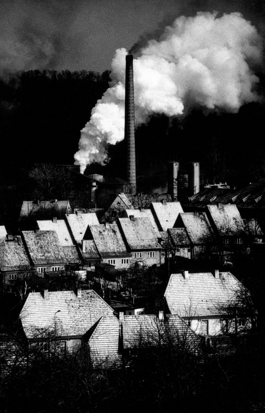 The 1970s were the apogee for mining and the steel industry in Poland. Micha¸ Ca¸a became fascinated with the landscape that this industry produced in Silesia. The smoking chimneys, sombre mining towns and mountains of industrial waste offered a panorama as threatening as it was surrealistic. The immense pollution that these antiquated industries caused was then already a regular component in the communist landscape. Photographing industrial facilities was the equivalent of spying, and Ca¸a was once arrested for taking a photograph of a mountain of coal, but because his car, in which many exposed rolls of film lay, was not searched he got off with 24 hours in jail. Ca¸a made his photographs from a critical stance. He saw the intimidating scale of this industry, compared to the isolated worker, as a metaphor for the communist reality.