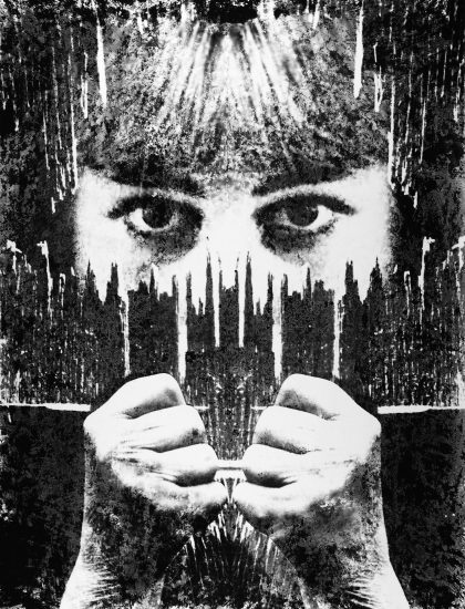 Until 1968 Marian Kucharski was a relatively obedient photographer. After that, the threat of new global conflict and the complicity of his homeland in the invasion of Czechoslovakia was too much for him. He changed his style and subjects. He processed his personal memories of the Second World War in experimental, threatening images. The army and technological progress became symbols for the dehumanisation in Poland and in the rest of the world. Kucharski created these images with a new technique. His own negatives were mixed with existing images to create symmetrical photographs which resembled paintings. The result was a critical answer to social realism. Because of their implicit character, at the time the photographs could still be normally exhibited in Poland.