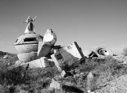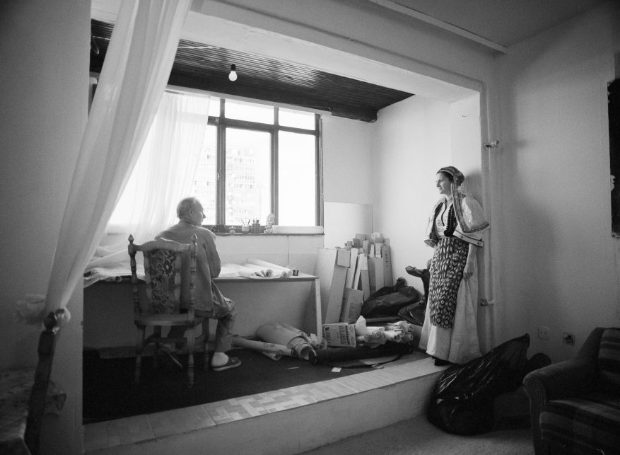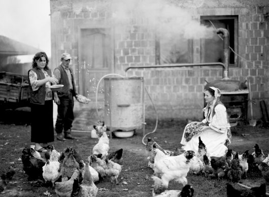 The British photographer Lala Meredith-Vula was born in Bosnia. Her mother is of British descent, her father an Albanian Kosovar. In SHIFTING BORDERS she makes a personal journey through British, Albanian and Kosovan culture. At the same time she tells the story of Albanian immigrants and refugees all around the world. In a mixture of nostalgia, dreams and homesickness she investigates themes that are inseparably linked with her identity: the transition from war to peace, from tradition to modernity and from communism to capitalism. Meredith-Vula photographed herself and a number of models in the landscape in traditional Albanian costumes. The one moment there is a sense of a timeless whole, the next of contradictions and disjunction – but yesterday and today always remain visibly interwoven