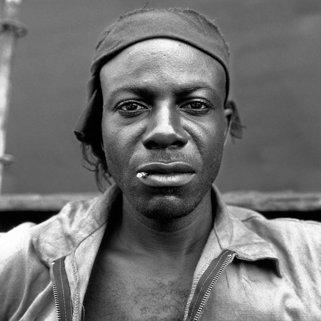The most important port city in the Republic of the Congo is Pointe-Noire, where the harbour workers have to perform their tasks under difficult conditions and for very little pay. Loading and unloading the ships takes place with considerably less safety precautions and fewer streamlined processes than in Western ports. David Damoison recorded the men of Pointe-Noire in probing black and white portraits. Their gaze, the dust and dirt betray the severity of their lives, but also their pride.