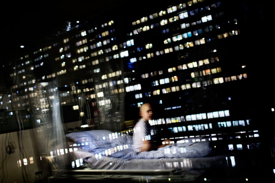 Vibe, a young girl with a brain tumour, looks out the window of the hospital. Despite repeated chemotherapy and radiation treatments, she will die.