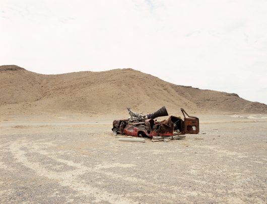 Gabriel Jones describes his ostensibly imaginary country of Irhann as a series of anti-glorious landscapes. In a region forsaken by man we encounter the remains of nuclear missiles and other weapons. They are as ridiculous now as they once were great and threatening. Inert, overgrown, abandoned – are these actually the killing machines that we assume them to be? Jones’s ambiguity leads the viewer down the garden path. Are we looking at the desolate landscape of a long-forgotten war – an apocalypse that wiped out mankind – or are we simply looking at a cemetery for obsolete civil materiel, booster rockets and satellites, icons of progress? Making use of photographs and video stills, Jones simultaneously suggests both hyper-reality and fantasy. His images transcend time, and lose every sense of threat. What remains is the absurdity.