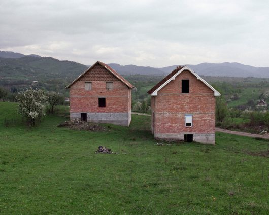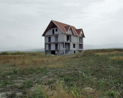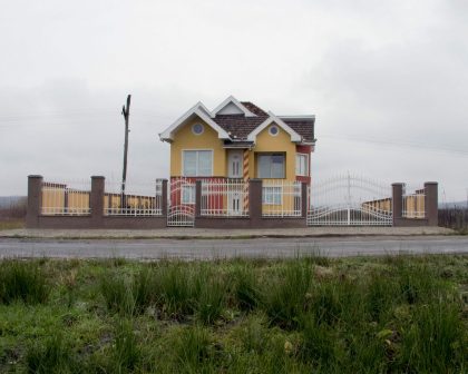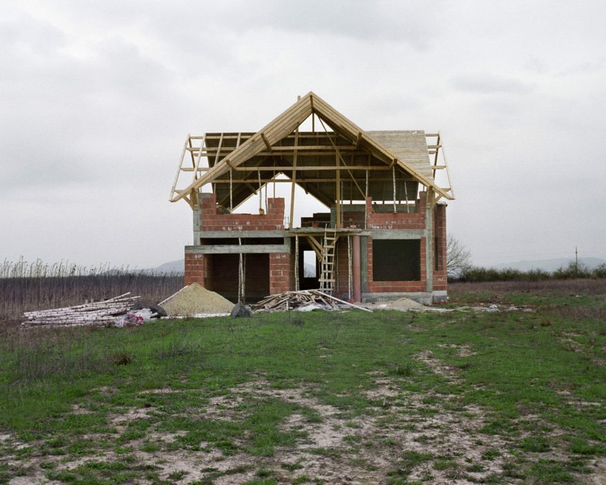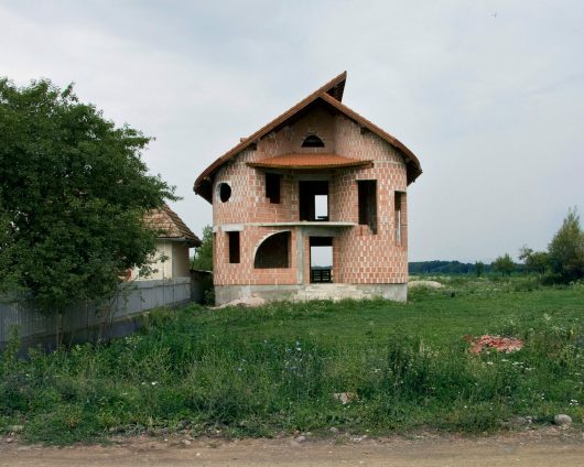 Since the fall of communism Romania has been the source for massive labour emigration. This has been coupled with the rise of a curious phenomenon: the villa as the incarnation of the absent worker. Absurdly large houses, hardly ever used because the owner works full-time in a foreign country, are rising across rural Romania. The elderly, who populate these rural areas together with the children who have been left behind, choose to remain in their old homes. The result: ghost towns of new dwellings. The young Romanian photographer Larisa Sitar recorded these houses in their desolate sadness. Strangely enough, in their miserable circumstances in the West their owners find comfort in being able to afford such a glorified vacation home and the auto that goes with it, she says. These houses function as status symbols and have to compensate for the constant absence of their owners. They serve as guardians for the migrant’s social status in the land he left behind.