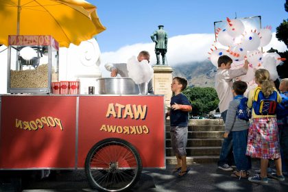 Although smaller than Hollywood, Cape Town also has a lively film industry, albeit they primarily shoot advertising spots for foreign companies who gladly take advantage of favourable bank exchange rates and a sunny climate. For a day or two, parts of Cape Town are transformed into European or American locations. A vineyard becomes a Dutch farmstead, a café a Parisian bistro. Cécile Mella lifts the veil on these attractive and often funny illusions, but in a characteristic mountain or building the attentive viewer can still catch a glimpse of Cape Town itself.