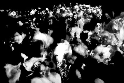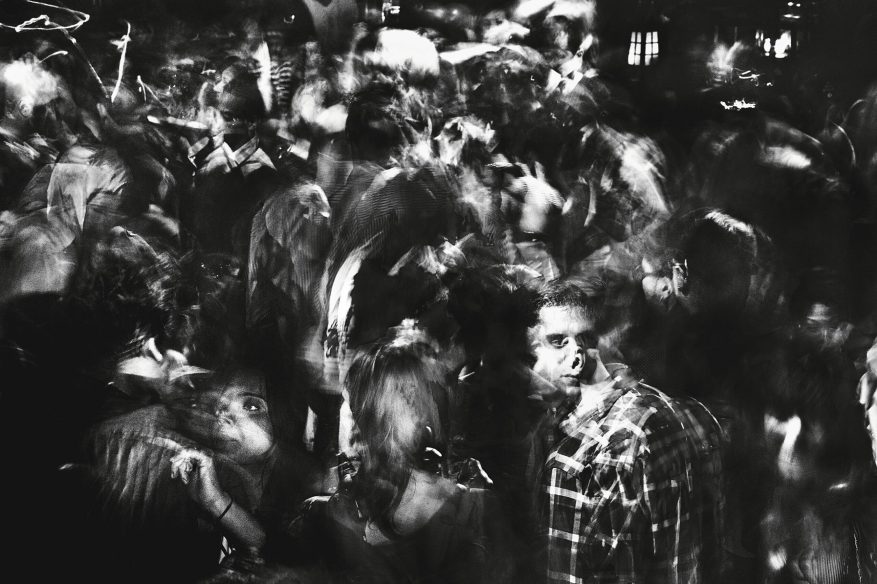 In HADES Devin Yalkin is not so much photographing people, but rather the way they move in space, individually and collectively. He records the culmination in blurring faces, constantly changing gestures and melting bodies. The work suggests a series of illusions, the treacherousness of outward appearances. These are apparently images from a dream of an underworld, dark and gritty.