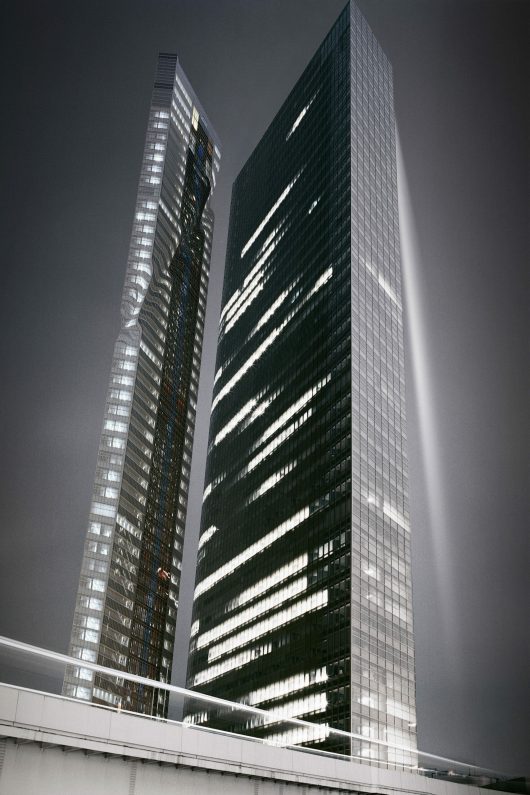 As in all his work, in LIQUID CITIES Michael Najjar investigates the society of the future, which, according to him, will be dominated by information technology. He works out a largely theoretical concept: architecture that is not rigid, but which is comprised of flexible forms that are constantly in motion. In LIQUID CITY cities are literally fluid – buildings change with the requirements of their users. The boundary between architecture and cyberspace blurs – a development that we are now already seeing in smart cities and Tokyo’s new Media City.