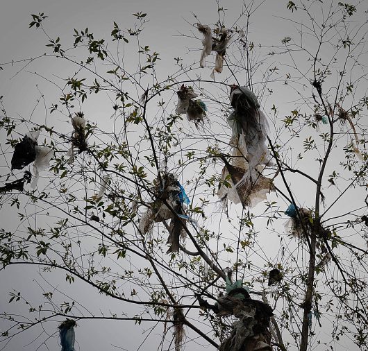 It is a bitter truth, Peiquan Wang observes: we are disgusted by garbage, but we keep on producing it all the time. By photographing the beauty of garbage, he tries to let us see it in a different way. Here and there he encounters trees that have been adorned with plastic bags and other trash. In his photos they becomes the flowers in an artificial landscape.