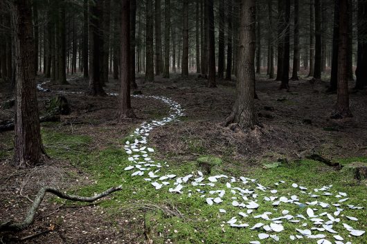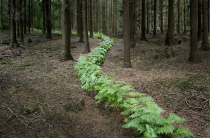In COME WITH ME Ellie Davies investigates the relation between landscapes and the artist, and the way in which the landscape helps form identity. In addition, the series underscores that our perception of nature is coloured by our cultural baggage. Davies photographed paths of artificial materials meandering through the woods, paths which enable her to be a part of nature, and which shape nature. Her work is a new approach to the role that art has traditionally had in the attribution of meaning to nature, and the creation of myths.