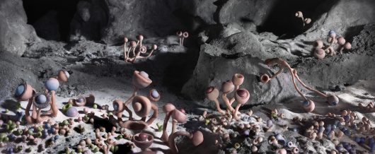 What will the world be like when synthetic organisms, created by man, adapt to the natural environment? Alison Carey photographed dioramas with creatures made from flesh-like material, creating an image of the world after man. It is a science fiction landscape that is less unreal than it seems. The progress of tissue engineering will make it possible in the future for us to create entities that can exist outside the controlled environment of the laboratory.