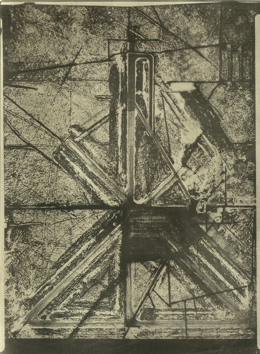 There are claims that in 1947 a space craft with three dead extraterrestrials on board crashed near the American town of Roswell, New Mexico – a claim shrouded in mystery and source of many conspiracy theories. When Gábor Kerekes discovered the computer programme USA Photo Maps, from which it is possible to download photographic quality satellite images, he wanted to see Roswell as it looks from space. Due to a mistake in the coordinates he missed his target by some hundreds of metres… and saw geometric forms that are intended to get information across to lay persons. He printed them out and photographed the prints in large format, so that the digital image again became analogue.