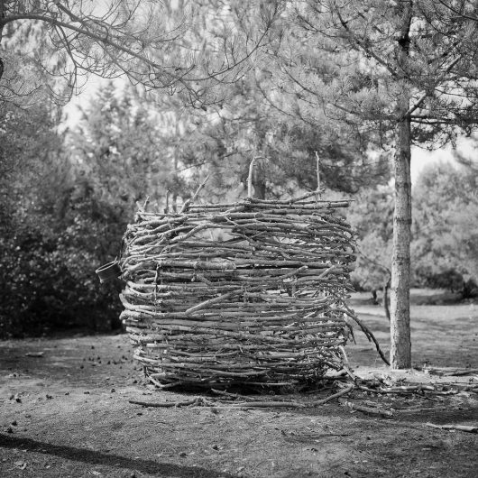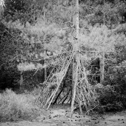 Every summer urban children, satiated with pre-programmed computer games, retreat into nature to build castles and palaces of branches and brushwood. Under the canopy of leaves they indulge in stories that go far enough to be exciting, but not so far that the adult world gets worried. After a time they leave these huts behind, small monuments to the nostalgic, wild days of childhood.
